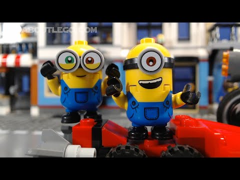 An action-packed Minions toy motorbike building set with Gru, Bob and Stuart.